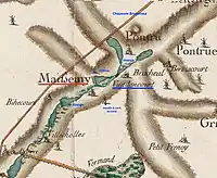 La carte de Cassini ci-dessus montre qu'au milieu du XVIIIe siècle, Maissemy était une paroisse située sur la rive gauche de la rivière l'Omignon. La crosse tournée vers la gauche indique que le village possédait une abbaye de filles.