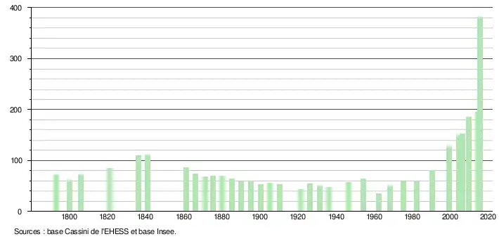 L'évolution du nombre d'habitants est connue à travers les recensements de la population effectués dans la commune depuis 1793. Pour les communes de moins de 10 000 habitants, une enquête de recensement portant sur toute la population est réalisée tous les cinq ans, les populations légales des années intermédiaires étant quant à elles estimées par interpolation ou extrapolation[1]. Pour la commune, le premier recensement exhaustif entrant dans le cadre du nouveau dispositif a été réalisé en 2004[2].