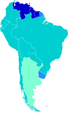 Les lois des différents pays encadrent le type d'activité sexuelle (vaginale, sodomie, fellation) ainsi que le sexe des participants. L'âge à partir duquel une personne peut avoir des relations sexuelles sans être en infraction avec la loi apparaît en gras dans le texte. Cet âge est valable pour les deux sexes. D'autres variables comme l'homosexualité et/ou la sodomie, lorsqu'elles sont illégales, sont signalées si elles sont importantes. Lorsqu'il existe un/des cas particulier(s) propre(s) aux pays, il est/sont indiqué(s). Il est à noter que le seul pays d'Amérique du Sud où l'homosexualité masculine est illégale est la Guyana. D'autres pays comme Le Chili et le Suriname imposent un âge de majorité sexuelle plus élevé pour les relations homosexuelles.