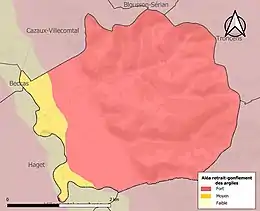 Le retrait-gonflement des sols argileux est susceptible d'engendrer des dommages importants aux bâtiments en cas d’alternance de périodes de sécheresse et de pluie. La totalité de la commune est en aléa moyen ou fort (94,5 % au niveau départemental et 48,5 % au niveau national). Sur les 62 bâtiments dénombrés sur la commune en 2019, 62 sont en aléa moyen ou fort, soit 100 %, à comparer aux 93 % au niveau départemental et 54 % au niveau national. Une cartographie de l'exposition du territoire national au retrait gonflement des sols argileux est disponible sur le site du BRGM[22],[Carte 3].
