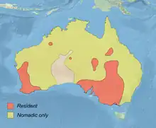 Cette espèce peuple l'Australie. C'est un oiseau nomade qui voyage à la recherche de points d'eau favorables.