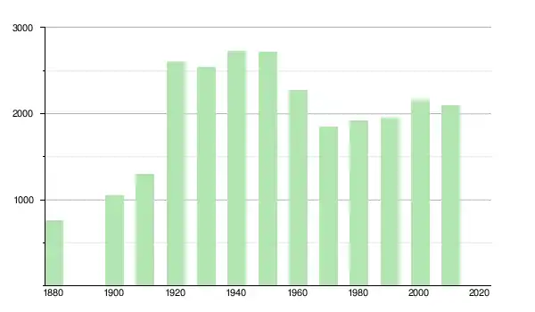 Au recensement de la population de 2000, il y avait 2 158 habitants, 797 ménages et 561 familles y résidaient. La densité de population était de 498,9 habitants/km2. Il y avait 908 structures d'habitation avec une densité moyenne de 209,9/km2. La répartition ethnique de la ville était de 98,01 % blancs, 0,14 % Afro-Américain, 0,37 % Américain natif, 0,23 % Asiatique, 0,09 % des îles du Pacifique, 0,56 % des autres ethnies, et 0,60 % d'au moins deux ethnies. Hispanique ou Latino représentaient 1,1 % de la population.
