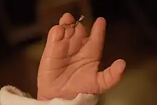 Main d'un bébé atteint de la maladie des brides amniotiques