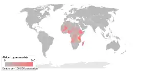 La maladie est endémique dans certaines régions de l’Afrique subsaharienne, couvrant environ 36 pays et menaçant 60 millions de personnes. Entre 2017 et 2022, l'OMS estime que moins de 1 000 individus sont infectés par an[1].