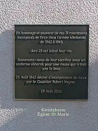 Le , toutes les églises d'Alsace ont été invitées à sonner le glas en mémoire de l'enrôlement de force de jeunes Alsaciens et Mosellans, à compter du [54],[55],[56].