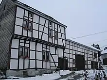 - Terre et bois Exemples de bâtiments (maisons, tanneries...) en pans-de-bois, en particulier dans l'ancienne Principauté de Stavelot-Malmedy.