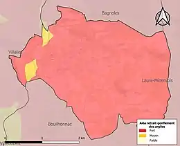 Le retrait-gonflement des sols argileux est susceptible d'engendrer des dommages importants aux bâtiments en cas d’alternance de périodes de sécheresse et de pluie. La totalité de la commune est en aléa moyen ou fort (75,2 % au niveau départemental et 48,5 % au niveau national). Sur les 419 bâtiments dénombrés sur la commune en 2019, 419 sont en aléa moyen ou fort, soit 100 %, à comparer aux 94 % au niveau départemental et 54 % au niveau national. Une cartographie de l'exposition du territoire national au retrait gonflement des sols argileux est disponible sur le site du BRGM[21],[Carte 3].