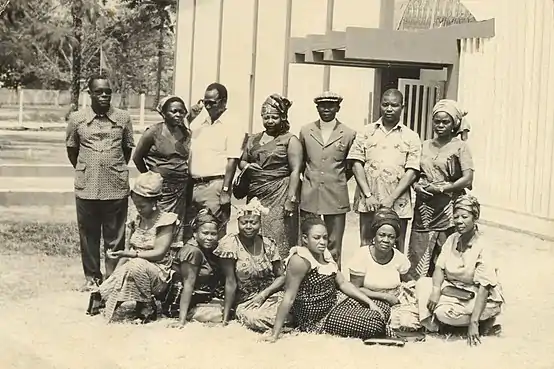 Bakolo Miziki, c'est aussi une mutuelle regroupant les participants les plus réguliers à l'émission[9]. On peut voir les membres de cette mutuelle sur le cliché ci-dessus autour de Mama Kanzaku et Mama Angebi, sur cette photo prise en 1977 juste avant le tournage de l'émission devant le studio de la Renapec (qui est devenue RTNC 2) où l'émission était enregistrée.