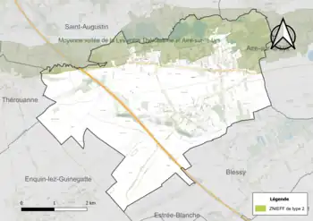Le territoire communal comprend une ZNIEFF de type 2[Note 1] : la moyenne vallée de la Lys entre Thérouanne et Aire-sur-la-Lys. Cette ZNIEFF est un ensemble intégrant un système alluvial du fond de la vallée et quelques bois, bosquets et landes[9].