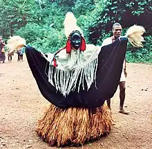 - Concernant le patrimoine des villages environnants, à diverses occasions, dans les moments joie et même de grandes tristesses, on assiste à l’exécution de diverses danses folkloriques. Le « Toua Tan » avec le cor comme instrument de musique, le « Medy », les masques sacrés et aussi les échassiers[19].