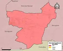 Le retrait-gonflement des sols argileux est susceptible d'engendrer des dommages importants aux bâtiments en cas d’alternance de périodes de sécheresse et de pluie. La totalité de la commune est en aléa moyen ou fort (94,5 % au niveau départemental et 48,5 % au niveau national). Sur les 52 bâtiments dénombrés sur la commune en 2019, 52 sont en aléa moyen ou fort, soit 100 %, à comparer aux 93 % au niveau départemental et 54 % au niveau national. Une cartographie de l'exposition du territoire national au retrait gonflement des sols argileux est disponible sur le site du BRGM[19],[Carte 3].