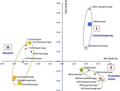 - (en) Wu et al., « Diversification of mandarin citrus by hybrid speciation and apomixis », Nature Communications, vol. 12, no 1,, , p. 4377 (lire en ligne [PDF])