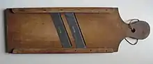 Une mandoline est un ustensile de cuisine, généralement en inox pour les professionnels ou en matière plastique ABS pour les particuliers, servant à tailler les légumes crus en tranches plus ou moins épaisses.