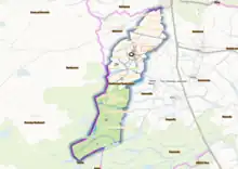 Le village est situé au nord de la forêt de la Reine et forme un territoire allongé dans l'axe nord-sud qui fait frontière cantonale et départementale. (Fig. 1).