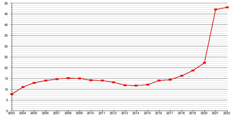 En 2002, le marché du manga représentait 22,6 % des bénéfices de l'industrie éditoriale japonaise et 38,1 % des livres et magazines publiés au Japon étaient des mangas[39]. Le volume de vente de mangas au Japon représentait quant à lui, en 2006, environ 27 % du total des livres vendus au Japon[40]. Les ventes de manga au Japon (magazines compris) représentaient 586 milliards de yens en 1995[41], 502 milliards de yens en 2005[40], 444 milliards de yens en 2015, mais 676 milliards de yens en 2021 grâce à l'essor des mangas sur support numérique[41]. Il est estimé que près d'un Japonais sur douze lit au moins une fois un manga par semaine (2005)[39].