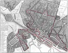 Schéma depuis le cabinet de la "Belle vue" des jardins du château de Meudon, vers 1700.