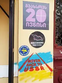 Graffiti à Batumi où il est écrit "On se souvient du 20 juin", "La Russie est une occupante", "Plus jamais l'URSS"
