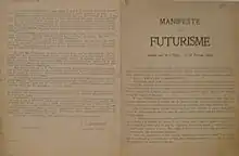 Le Manifeste du Futurisme a été ensuite publié dans Le Figaro, le , à Paris[1], avant d'être traduit en italien dans l'un des derniers numéros de la revue milanaise Poesia. Avec la publication en France, le Manifeste acquiert une pertinence internationale.
