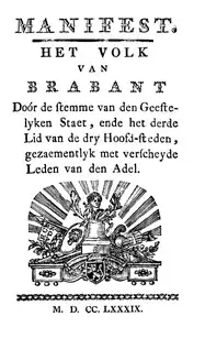En , le meneur des statistes Henri van der Noot et le général Jean-André van der Meersch marchent avec une petite armée depuis le Brabant des États dans les Provinces-Unies vers le sud, sur le duché de Brabant alors sous autorité autrichienne. La première ville d'importance libérée est Hoogstraten et c'est là que Van der Noot fit connaitre à l'armée des patriotes, le manifeste, le . Il avait été publié la veille par le Comité de Breda[1].