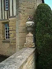 Aujourd'hui, le corps de logis du manoir s'ouvre sur une cour qui fut séparée en deux et agrémentée d'un jardin à la française (art topiaire) autour de laquelle s'organise un remarquable ensemble de communs en colombages aux soubassements de pierre, représentatif de l'architecture à pans de bois du pays d'Auge[8],[9],[6].
