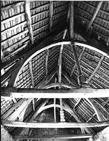« Il faut signaler la partie la plus belle de cette salle sous combles: il s'agit d'une charpente gothique, absolument intacte et à notre connaissance unique en Bretagne dans un bâtiment civil. Dans cet ensemble exceptionnel, [composé de quatre imposantes fermes], des entraits à sections polygonales supportent des poinçons également polygonaux, taillés en forme de colonne dont les bases moulurées s'ornent de cartouches qui, peut-être, étaient autrefois décorés; au deux-tiers de la hauteur de cette charpente, des entraits retroussés se détachent des arbalétrières pour se rejoindre sur les poinçons en formant des arcs en tiers-points; ils supportaient un lambris aujourd'hui disparu. L'état d'abandon dans lequel [se trouve] ce logis laisse difficilement deviner la belle allure que devait avoir sa grande salle sous son long vaisseau lambrissé en ogive. »[3].
