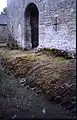 Une unique fenêtre gothique, identique à celles de la façade Est, éclaire la grande salle de l'étage vers l'ouest.