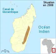 Cette espèce est endémique de Madagascar. Elle se rencontre entre 600 et 1 200 m d'altitude de la commune de Fierenana jusqu'au massif d'Andringitra[1],[2].