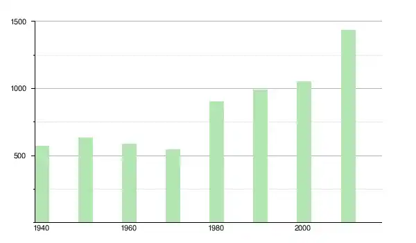 | 1960 | 587 | ▼ −7,56 % | |