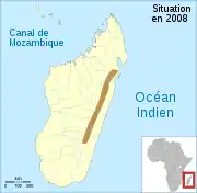 Cette espèce est endémique de Madagascar. Elle se rencontre entre 500 et 1 000 m d'altitude dans le centre-Est de l'île[1],[2].