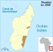 Cette espèce est endémique de Madagascar. Son aire de répartition se compose de deux zones séparées ; toutefois il n'est pas exclu que les spécimens du nord-est puissent appartenir à une espèce non encore décrite. Elle est présente du niveau de la mer jusqu'à 1 400 m d'altitude[2].