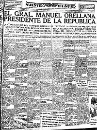 - Le , un coup d'État du général Manuel María Orellana Contreras[nb 1] pousse Palma à la démission après une courte bataille à l'intérieur du Palais présidentiel. Durant le combat, qui dure moins d'une heure, Palma et Mauro de León sont tués. Le pouvoir libéral qui se met en place nomme alors le général Roderico Anzueto au poste stratégique de chef de police[nb 2].