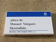 En 2007, les autorités locales ont donné son nom à une rue de Getafe, ville de la banlieue de Madrid. Le est inaugurée à Barcelone la place Manuel-Vázquez-Montalbán, située au croisement de la rue de Sant Rafael et la Rambla del Raval, près du lieu où il était né.