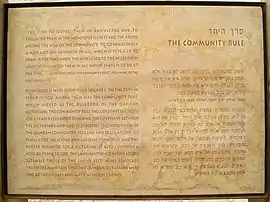 Dans la version 1QS de la Règle de la communauté figure une citation d'Isaïe (40, 3) qui ne semble pas avoir fait partie de la Règle primitive[29]. Au texte initial a été ajoutée la partie en italique :