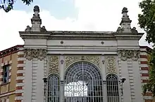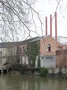 Pour accéder à l'usine du faubourg Saint-Roch, Benjamin Normant fait édifier en 1900 une porte d’entrée monumentale, dite « Porte Normant » ou « Porte des Béliers »[1] à cause de quatre têtes de béliers qui ornent les chapiteaux des colonnes. Ces têtes sculptées dans la masse symbolisent le travail de la laine et représentent la fécondité. Conçue en pierre de taille, métal et verre, à l'image des nombreuses entrées d'usine textile du Nord de la France ; cette porte forme un bon exemple de l'architecture industrielle de la fin du XIXe siècle.