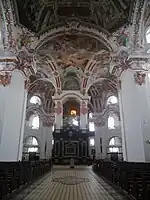 D'autre part, l'abbaye d'Einsiedeln avait accueilli auparavant Dom Anselm Joseph Alois Schubiger[pm4 2] († 1888), ancien élève de son école[5]. Ce prêtre, musicologue, maître de chœur de l'abbaye et compositeur, avait sorti en 1858 son œuvre Die Sängerschule St. Gallens vom 8. bis 12. Jahrhundert (L'École de chant de Saint-Gall du VIIIe au XIIe siècles)[6]. Cette œuvre soulignait déjà la qualité de l'Antiphonarium missæ d'Einsiedeln et du recueil de séquences de Notker[7].