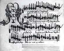 Vers 1500, après le tournant du siècle, il y aura un changement dans la transmission, jusque-là limitée, de sources musicales polyphoniques provenant des anciens Pays-Bas. On conserve des recueils de musique profane qui trouvent leurs racines dans les villes et à la cour. Le manuscrit Lauwerijn (ou Lauweryn) de Watervliet (LonBL, 35087), conservé à la Bibliothèque britannique à Londres, fut compilé vers 1505-1507 par le noble brugeois Jerome Lauwerijn (en français Jérôme Laurin ; latinisé : Hieronymus Laurinus)[1]. Il servit Maximilien d'Autriche et fut le conseiller, le chambellan et le trésorier général de Philippe le Beau et, après la mort de celui-ci, de Marguerite d'Autriche[2] de 1497 jusqu'à sa propre mort en 1509[3]. Son petit-fils Marcus Laurinus était un célèbre humaniste ; la tradition familiale n'était sans doute pas étrangere à cela. Pour l’histoire de la musique aux Pays-Bas, il s'agit du premier manuscrit complet entièrement destiné à la musique polyphonique et contenant un répertoire profane depuis le milieu du XVe siècle[2].