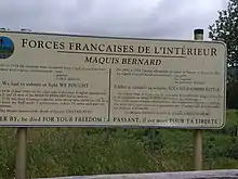 Panneau en hommage à Jacques Chataigneau, mort le lors d'une embuscade faites aux Allemands.