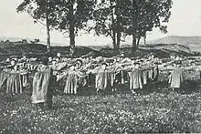 À la fin d'avril, elle est appelée à Salamanque et reçue par Franco[81]. La Sección Femenina est intégrée à la Phalange et María Urraca, aux côtés de Pilar Primo de Rivera et de Mercedes Sanz Bachiller (es), en est l'une des dirigeantes. Elle prend en charge la gestion de la Delegación nacional de frentes y hospitales (Délégation Nationale des Fronts et des Hôpitaux)[82], l'une des trois branches de la Sección[83] et est chargée de la restauration pour les blessés. En , elle est nommée - parmi onze carlistes[84] - au Consejo Nacional (Conseil national) qui vient d'être créé[85], ce qui déclenche son exclusion de la Comunion tradicionalista[86]. Engagée dans l'organisation et le travail de propagande, elle continue à rendre visite aux soldats sur les lignes de front[87] et est fêtée comme une héroïne nationaliste au même titre que Moscardó[88]. À l'inverse elle est raillée par la presse républicaine[89].