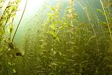 Le Potamot perfolié (Potamogeton perfoliatus), l'une des espèces en forte régression du marais audomarois, jugée au bord de l'extinction dans ce marais fin 2018 par le CBNBL
