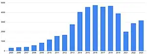 Nombre de concurrents terminant le parcours de 2004 à 2022.