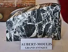 - Le Grand Antique, de couleur noir et blanc extrait dans la commune de Moulis en Ariège. La carrière fut exploitée dès l'Antiquité romaine. Le marbre, alors appelé Marmor Celticum, fut utilisé dans de nombreux bâtiments à Rome et Constantinople. Rouverte au XIXe siècle, elle fut abandonnée en 1952. Depuis 2014, elle est à nouveau exploitée et le marbre moulisien s'exporte désormais à Londres, à New York, au Japon...