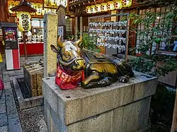 Un sanctuaire shinto, le Nishiki Tenman-gū, est situé à l'extrémité est du marché[10],[2]. Plusieurs autres sanctuaires, plus petits, sont également situés dans l'enceinte du marché[10]. Le dieu shinto Tenjin y est vénéré, ainsi que son messager qui prend la forme d'une vache. Également lié à la réussite commerciale, il trouve beaucoup de succès auprès des commerçants et des touristes du marché[11].