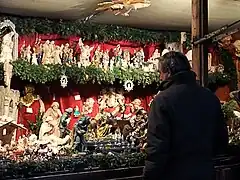 Des nombreuses boutiques, et environ 150 chalets / échoppes installés pour l'occasion, dans une ambiance festive, illuminés dans l'esprit de Noël, vendent des produits régionaux, de l'artisanat traditionnel bavarois / artisanat d'art, décorations de Noël, cadeau de Noël... et également de produits alimentaires festifs, avec ses nombreux restaurants et boutiques de la cuisine allemande régionale traditionnelle, vin chaud, tarte flambée, tartines, pain d'épices, gâteaux, confiseries...