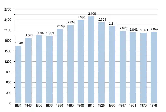 - Sources : INS, Rem. : 1831 jusqu'en 1970 = recensements, 1976 = nombre d'habitants au 31 décembre.