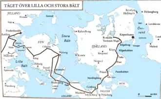 Sont alors examinés les chemins les plus sûrs à travers la glace couvrant le Grand Belt afin d'atteindre l'île de Seeland. Erik Dahlberg est à nouveau en charge et conseille de prendre la route la plus longue via Langeland et le Lolland plutôt que le chemin le plus direct. La nuit du , le roi s'en va à travers la glace accompagné par sa cavalerie et atteint le Lolland plus tard dans la journée. L'infanterie et l’artillerie arrivent également le jour suivant. Ainsi, le , les Suédois atteignent le Seeland et, le , à marches forcées, atteignent les environs de Copenhague. Les Danois, certains que les Suédois ne débuteraient leur offensive qu'au printemps au plus tôt, paniquent et se rendent. Les négociations démarrent alors et, le , le traité de Roskilde est signé par les deux partis.