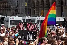 Comme pour d'autres marches des fiertés dans le monde, notamment New York ou Toronto, la présence de policiers défilant en uniforme dans la marche est remise en cause, pour des raisons multiples. La première, historique, est que les marches des fiertés sont héritières des émeutes de Stonewall, qui étaient une protestation contre le harcèlement policier du bar gay Stonewall Inn. L'autre raison est une critique des positions du Flag ! (l'association LGBT des personnels du ministère de l'Intérieur) et de sa non-distanciation des pratiques policières qui affectent négativement une partie de la communauté LGBT de France : répression des mouvements sociaux, violence policière raciste, harcèlement policier des sans-papiers ou des travailleuses du sexe[p 26]. En parallèle, le Flag ! refuse de participer à la marche des fiertés 2021, estimant que le trajet du parcours choisi par l'inter-LGBT met en danger les policiers[p 26].