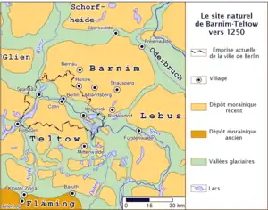 Les Slaves qui s’étaient établis près des rives de la Spree étaient connus sous le nom de Sprevane. Ils se sont installés à l’est de la ligne formée par les rivières Havel et Nuthe, dans les actuelles régions de Barnim et de Teltow. Ils ont érigé leur principale place forte au point de confluence entre la Dahme et la Spree, à Köpenick. Les Hevelli (ou Stodoranie) vivaient à l’ouest de cette ligne, dans les actuelles régions de Havelland et de Zauche. Ils ont construit leur principale place forte à Brenna (aujourd’hui Brandebourg-sur-la-Havel). Ils avaient aussi un important avant-poste sur le site de l’actuelle citadelle de Spandau à Berlin. Les Sprevane et les Hevelli étaient en guerre en permanence avec leurs voisins germains et slaves.