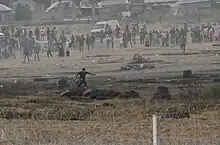 Lors de la Journée de la Terre, 30 000 Palestiniens environ participent à la première journée de manifestations de cette « Marche du retour », dans la bande de Gaza en plusieurs endroits le long de la frontière entre la bande de Gaza et Israël. Cette journée est une des plus violentes de ces dernières années[53]. Les Forces de Défense d’Israël ont tué 17 Palestiniens[54] et affirment que la plupart d’entre eux étaient des activistes de la branche militaire du Hamas ou d’autres organisations djihadistes. Le Hamas annonce 1 416 blessés : par balles réelles, par balles en caoutchouc ou par intoxication au gaz lacrymogène. Ce chiffre est contesté par l'armée de défense d'Israël[42]. Aucun bilan indépendant des parties n’est disponible[55],[56],[57]. Pendant les manifestations, des groupes palestiniens composés principalement de jeunes hommes brûlent des pneus, jettent des cocktails Molotov, des pierres à la fronde, des grenades et des explosifs[58] en direction de militaires israéliens[48],[59],[60],[61]. Parallèlement des palestiniens tentent des infiltrations armées en territoire israélien, des sabotages de la barrière[62],[63] et des centaines d'incendies volontaires des champs israéliens[64].