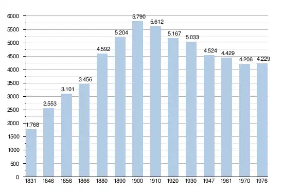- Source: DGS , de 1831 à 1981=recensements population; à partir de 1990 = nombre d'habitants chaque 1 janvier