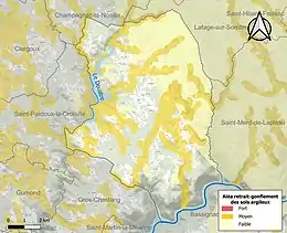 Le retrait-gonflement des sols argileux est susceptible d'engendrer des dommages importants aux bâtiments en cas d’alternance de périodes de sécheresse et de pluie. 31,9 % de la superficie communale est en aléa moyen ou fort (26,8 % au niveau départemental et 48,5 % au niveau national). Sur les 774 bâtiments dénombrés sur la commune en 2019, 151 sont en aléa moyen ou fort, soit 20 %, à comparer aux 36 % au niveau départemental et 54 % au niveau national. Une cartographie de l'exposition du territoire national au retrait gonflement des sols argileux est disponible sur le site du BRGM[17],[Carte 2].
